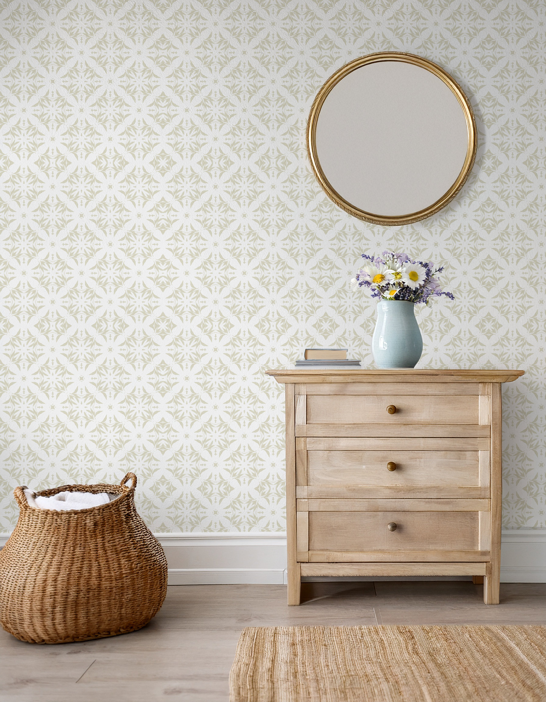 Heritage Lattice—a small-scale geometric in soft colorways. It’s a quiet, traditional blender that supports florals and checks, reads neutral in a room, and works across wallpaper, bedding, and upholstery. Open to licensing and custom color development for retail and hospitality lines.