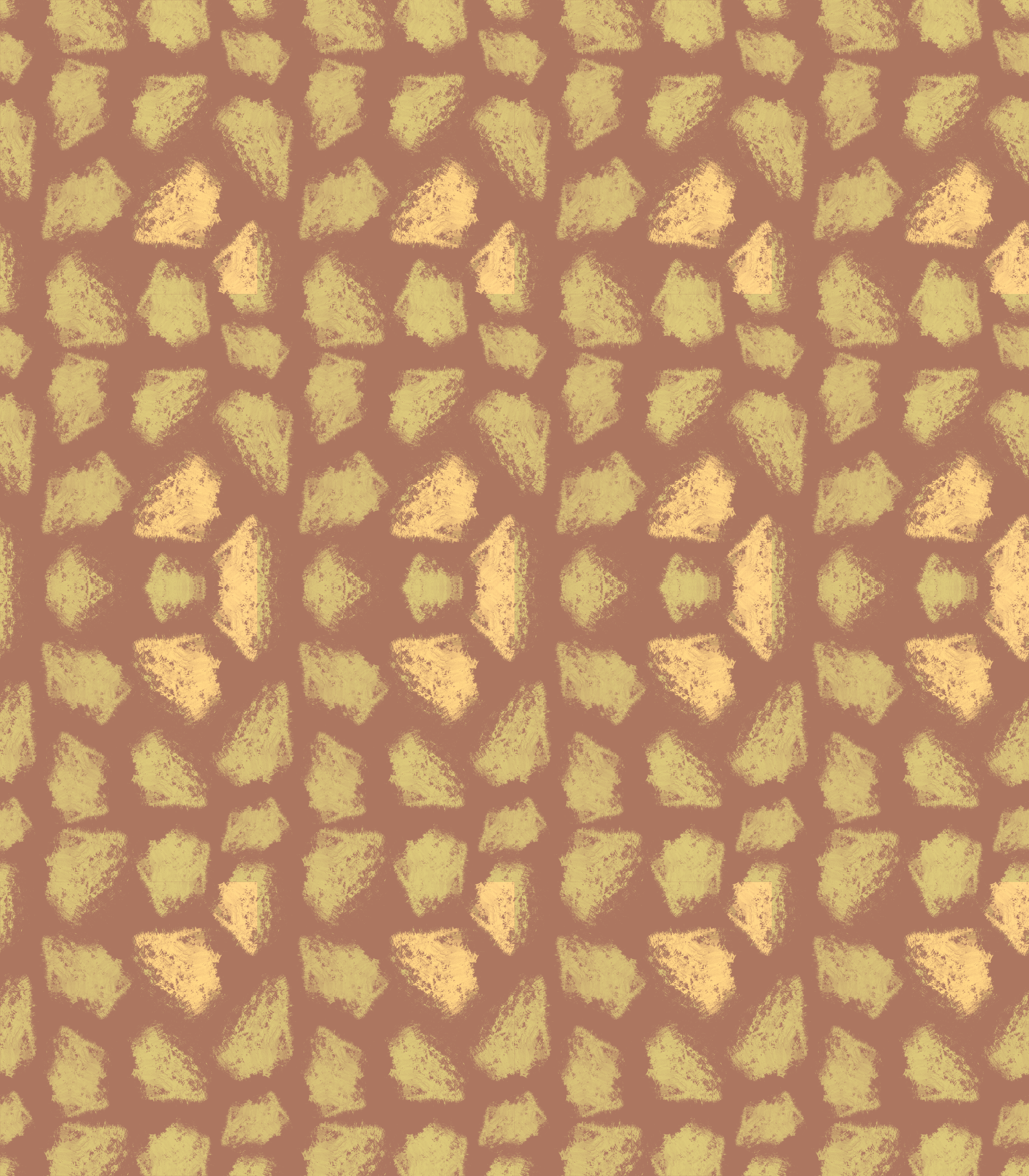 Rows of abstract “scratch” leaf-like patterns in multiple shades create a repetitive geometric motif. The design has a hand-drawn, textured appearance that suggests a rustic or organic aesthetic.